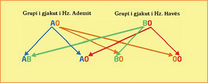 Siç shihet në diagram, nëse të dy Hz. Ademi dhe Hz. Hava do të kishin grupin e gjakut B në strukturën gjenetike heterozigote, të katër grupet aktuale të gjakut do të formoheshin prej tyre.